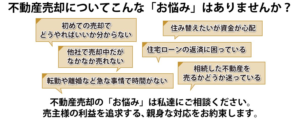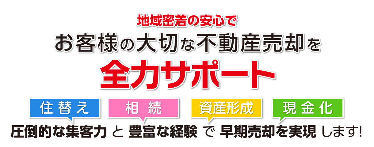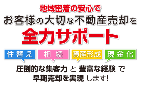 地域密着の強みと積み重ねた経験を活かし、自社ホームページでの集客と独自ネットワークでお客様を紹介できるため、早期売却が可能です。